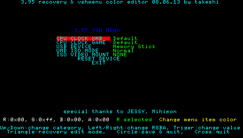 正式リリースにあたってCFW3.93も対応され、3.95GENと併せてrecoveryとvshmenuのカラー変更ができるようになっております