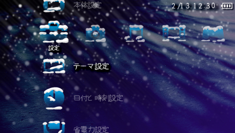 ほねこさん作成の「PTF」XMBテーマ、「FIRST SNOW THEME」です